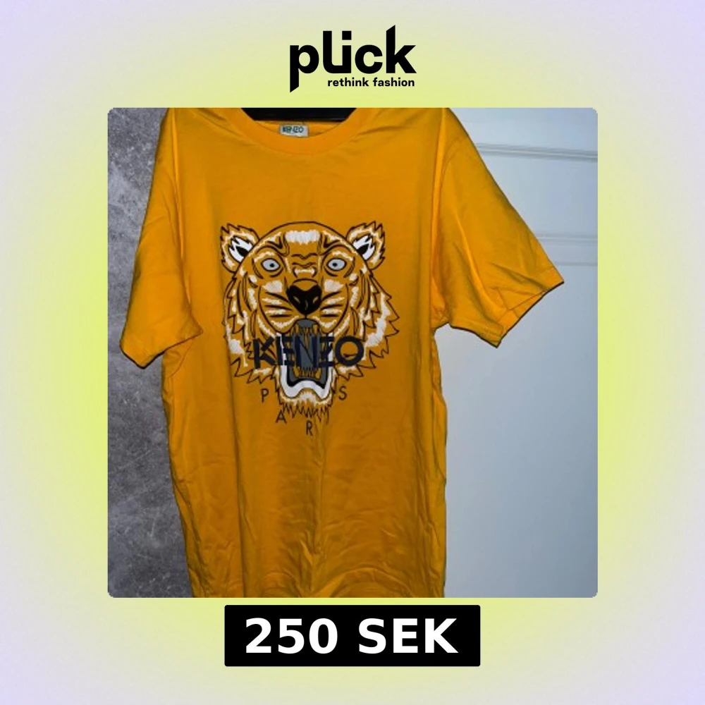 Säljer en gul t-shirt från Kenzo med ett coolt tigertryck på framsidan. T-shirten har korta ärmar och är perfekt för en avslappnad stil. Passar bra till både jeans och shorts. Tröjan är som ny utan några som helst hål eller defekter! Får skicket 9/10 pga vardaglig användning😊