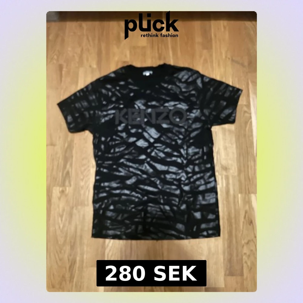 Säljer en svart t-shirt från Kenzo med blankt zebramönster och stor logga över bröstet. Klassisk passform med korta ärmar och rund hals. Materialet känns mjukt och skönt, perfekt för dig som vill sticka ut lite extra.