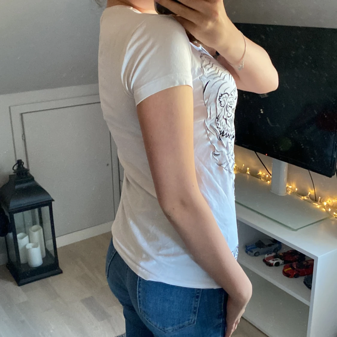 Jättecool men inte min stil, tunt material och lite genomskinlig . Har en liten grå fläck på axeln