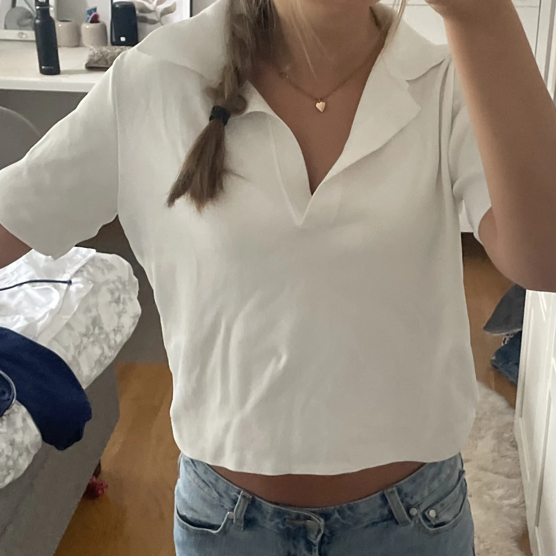 Säljer denna superfina stickade t-shirten från chiquelle. Säljer den då den tyvärr inte kommer till användning längre. Jag är 166cm och om ni har frågor är de bara och skriva.💕