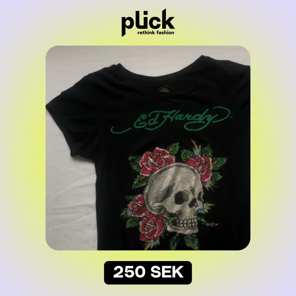 Jätte cool t-shirt från Ed Hardy. Den är lång så funkar att ha som både en kort ”klänning” eller en topp om man viker upp den tex. Några diamanter har lossnat men absolut inget man tänker på, annars jätte fint skick. Skick vid frågor💕