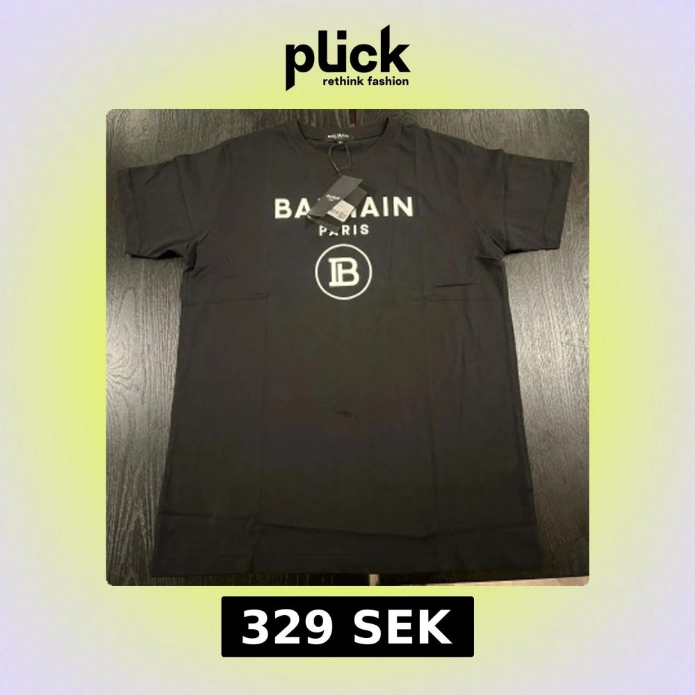 Svart t-shirt från Balmain Paris med vit logotyp och tryck framtill. Klassisk rund hals och korta ärmar. Tillverkad i mjuk bomull som känns skön mot huden. Perfekt för dig som gillar stilrena och lyxiga plagg med tydlig branding.