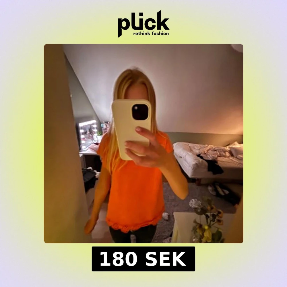 Superfin orange/korall topp från Chloé med korta ärmar och snygg broderad spetskant nertill. T-shirten har en enkel, rak passform och är tillverkad i mjukt bomullstyg. Köpte för 200kr second hand och tror original pris är runt 500-700kr eftersom att det är märkeströja. Storleken är för 12 år men passar mig som är 167 så den är stor i storleken.