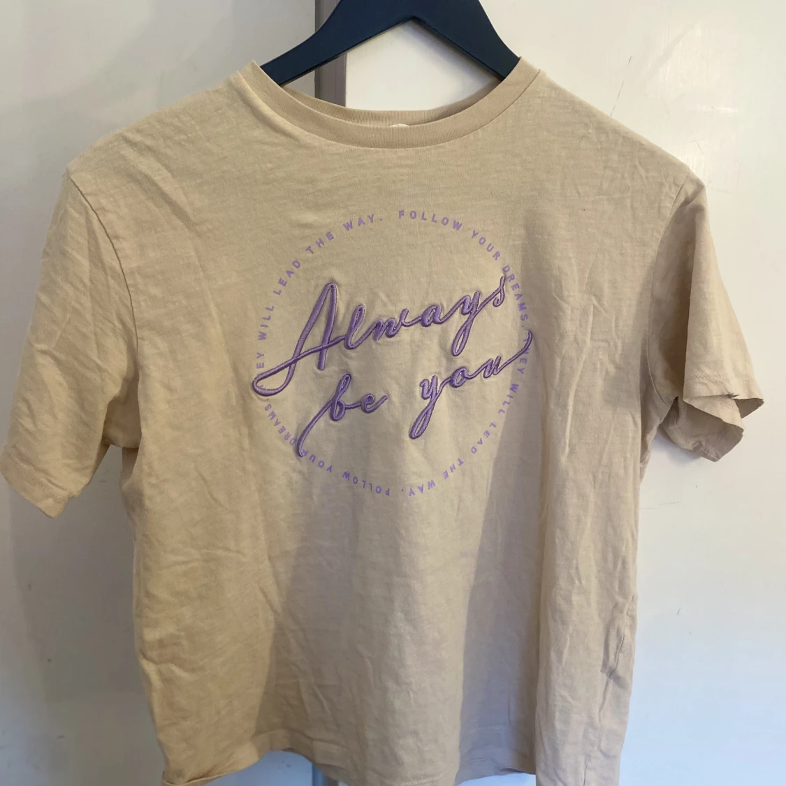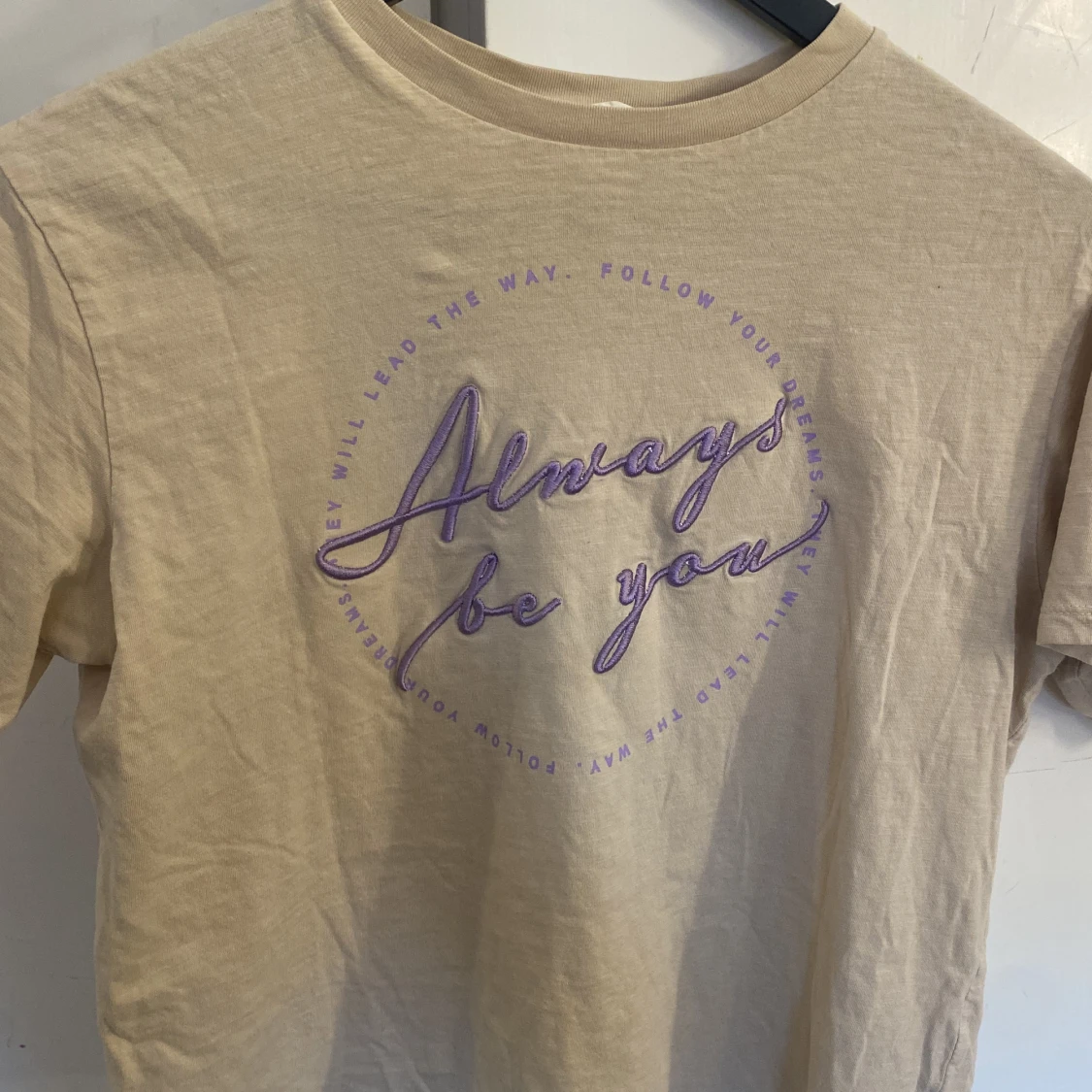 Säljer en bekväm beige tröja med lila tryck💘 Bra skick och perfekt storlek i ärmarna💘 Tål 40 graders tvätt