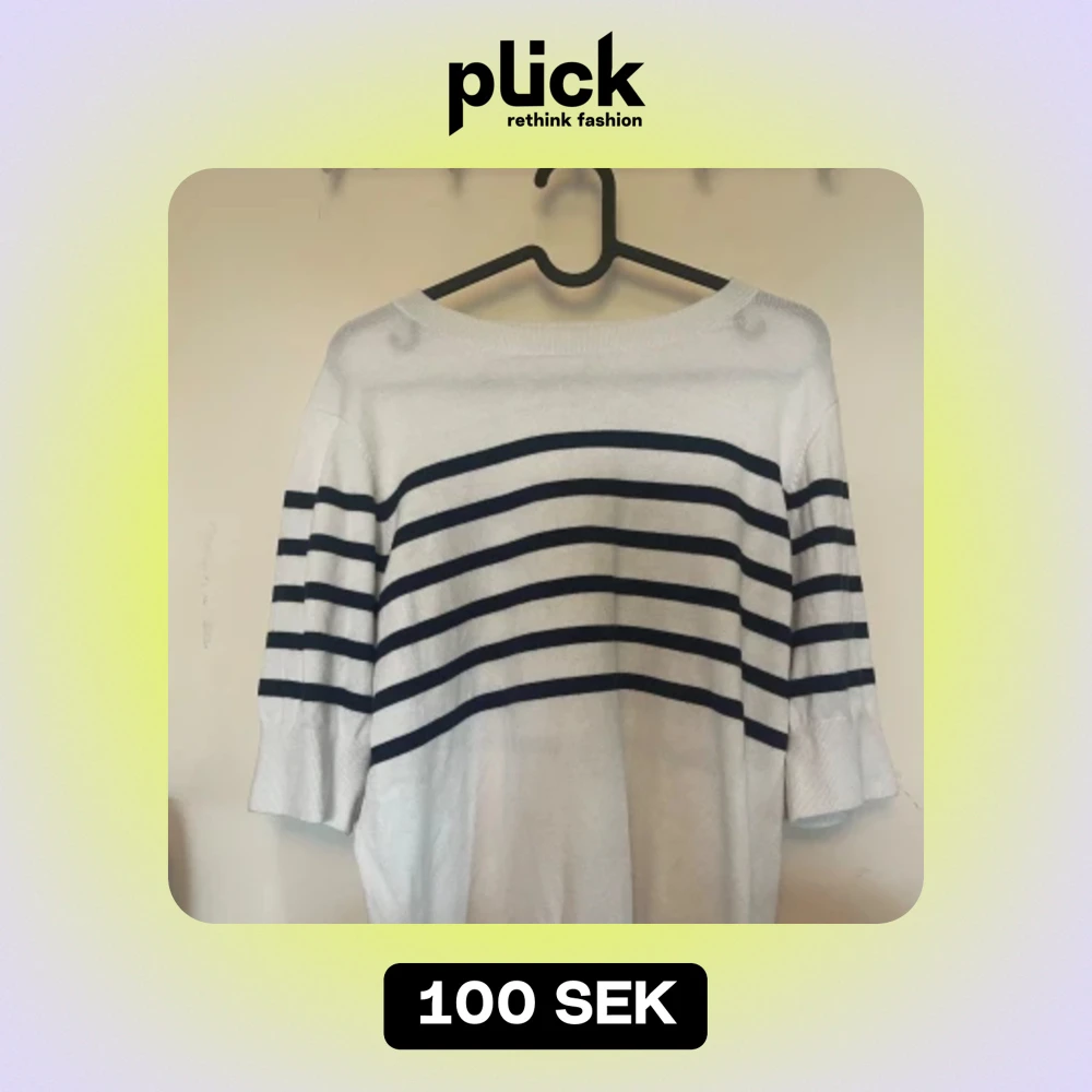 Säljer en jättefin tröja från Kappahl som är för stor och därför inte kommer till användning. Inte jättetydligt på bild men ränderna är mörkblåa. Tröjan är i mycket bra skick och använd ett fåtal gånger.