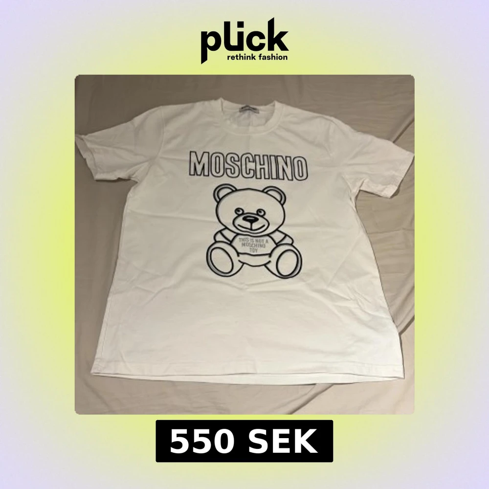 Vit t-shirt från Moschino med stort svart björntryck och texten 'This is not a Moschino toy' på framsidan. Klassisk rund hals och korta ärmar. Skön och mjuk bomull som passar perfekt till jeans eller shorts.