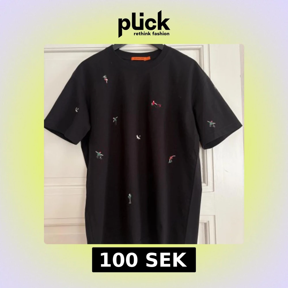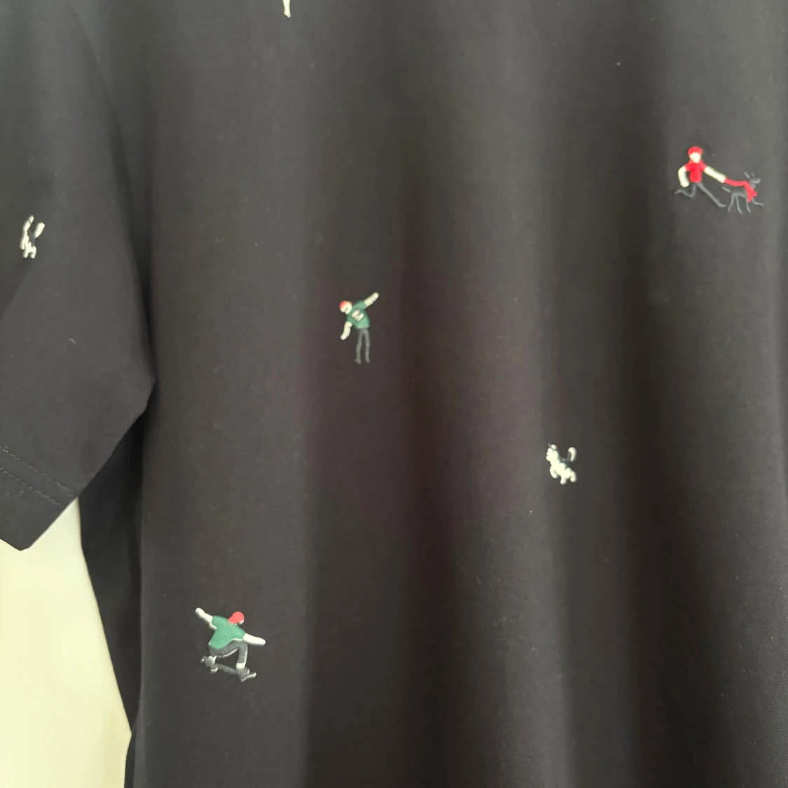 Svart t-shirt från Gianni Lupo i bomull med små broderade figurer och hundar över hela plagget. Klassisk passform med rund hals och korta ärmar. Perfekt för dig som vill ha en unik och lekfull stil.