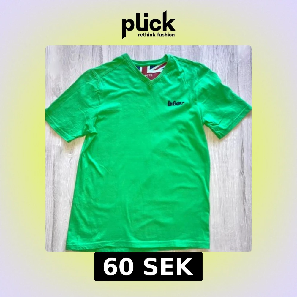 Säljer en grön t-shirt från Lee Cooper med v-ringning och liten broderad logga på bröstet. T-shirten är i 100% bomull och har korta ärmar. Perfekt för en avslappnad stil.