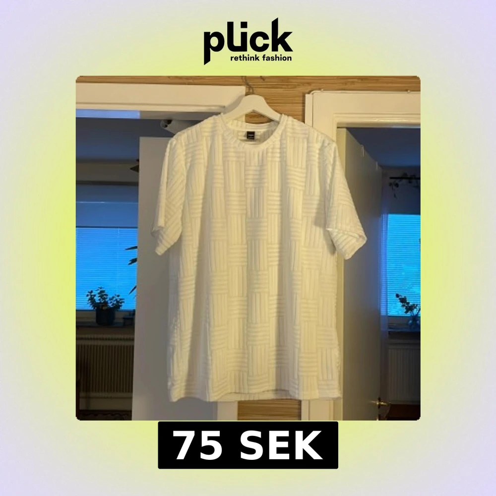 Säljer en vit t-shirt från Manfinity i storlek L. T-shirten har korta ärmar och ett unikt rutigt strukturmönster som ger en cool 3D-effekt. Perfekt för dig som vill sticka ut med en stilren men ändå speciell look.