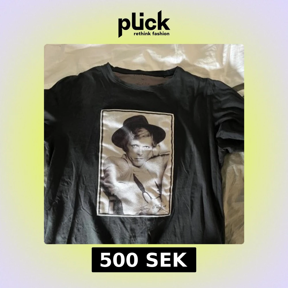 Svart t-shirt med ett stort fototryck på bröstet som föreställer en person med hatt. T-shirten har rund hals och korta ärmar. Trycket är i svartvitt och ger en cool vintagekänsla. Perfekt för dig som gillar unika motiv och streetstyle.