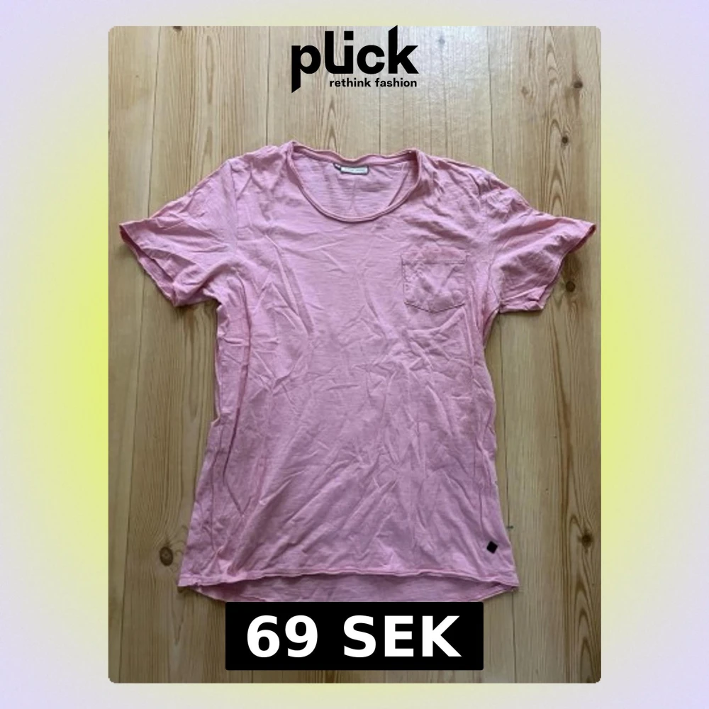 En enkel rosa t-shirt från Casual Friday i storlek L. T-shirten har rund hals, korta ärmar och en liten bröstficka. Tillverkad i mjuk bomull som känns skön mot huden. Perfekt för en chill och avslappnad stil.