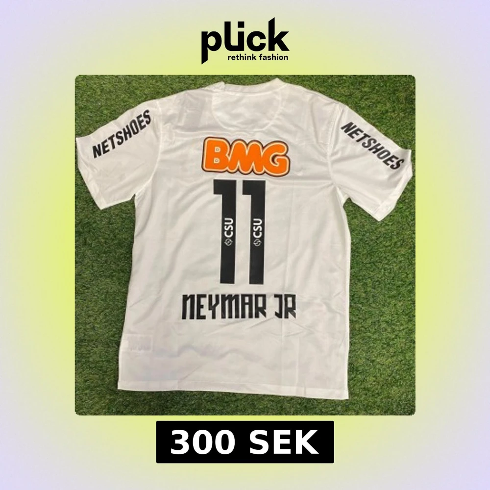 Snygg vit fotbollströja från Santos FC med Neymar Jr och nummer 11 på ryggen. Tröjan har korta ärmar, tryckta sponsorer och är tillverkad i lätt och ventilerande material. Perfekt för dig som vill sticka ut på planen eller visa support för Neymar.