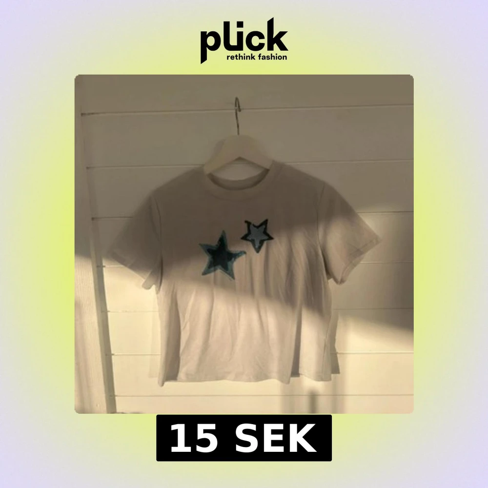 Vit t-shirt i polyester med två blå stjärnor framtill. Klassisk rund halsringning och korta ärmar. Modellen är något croppad och har en enkel, clean vibe som passar perfekt till jeans eller shorts.