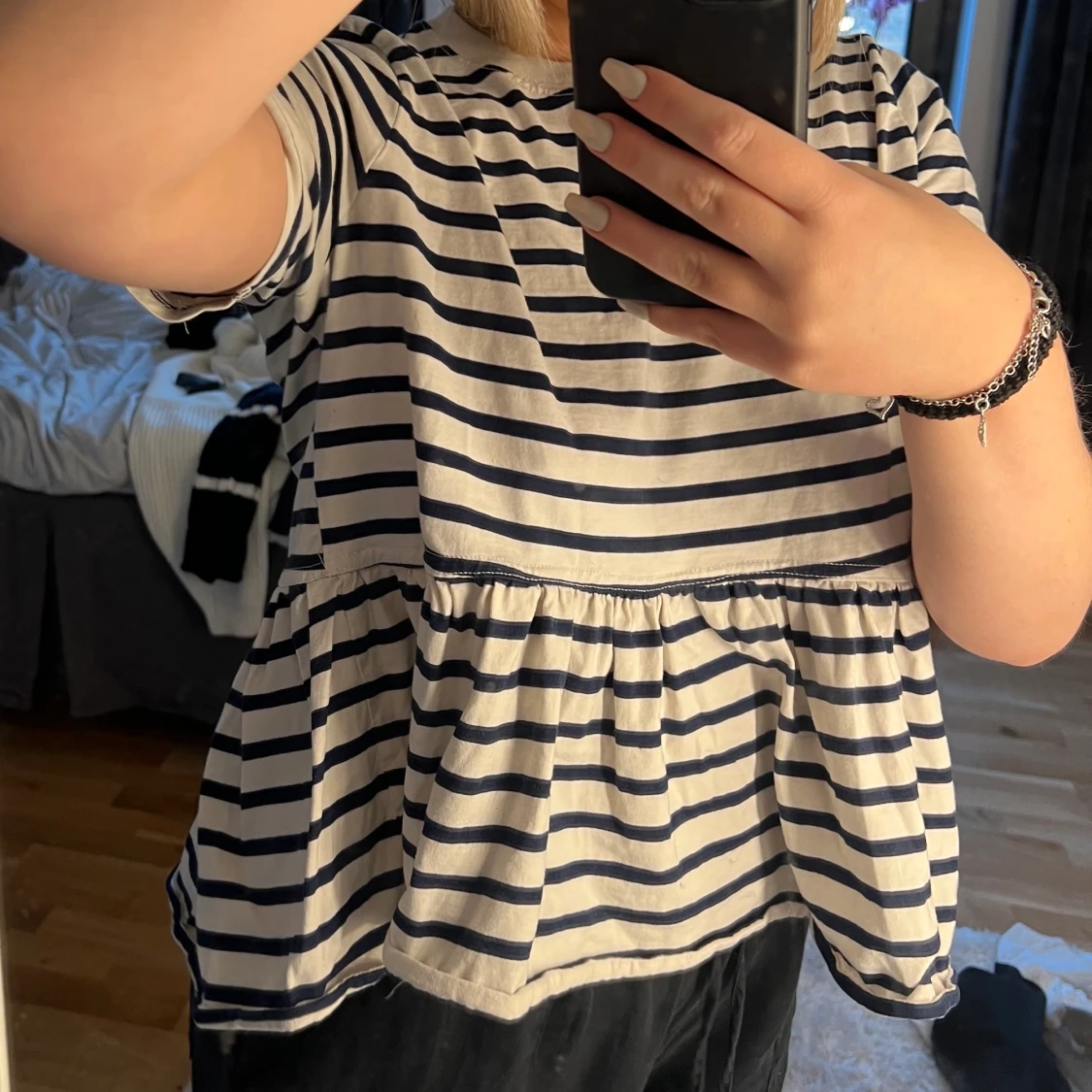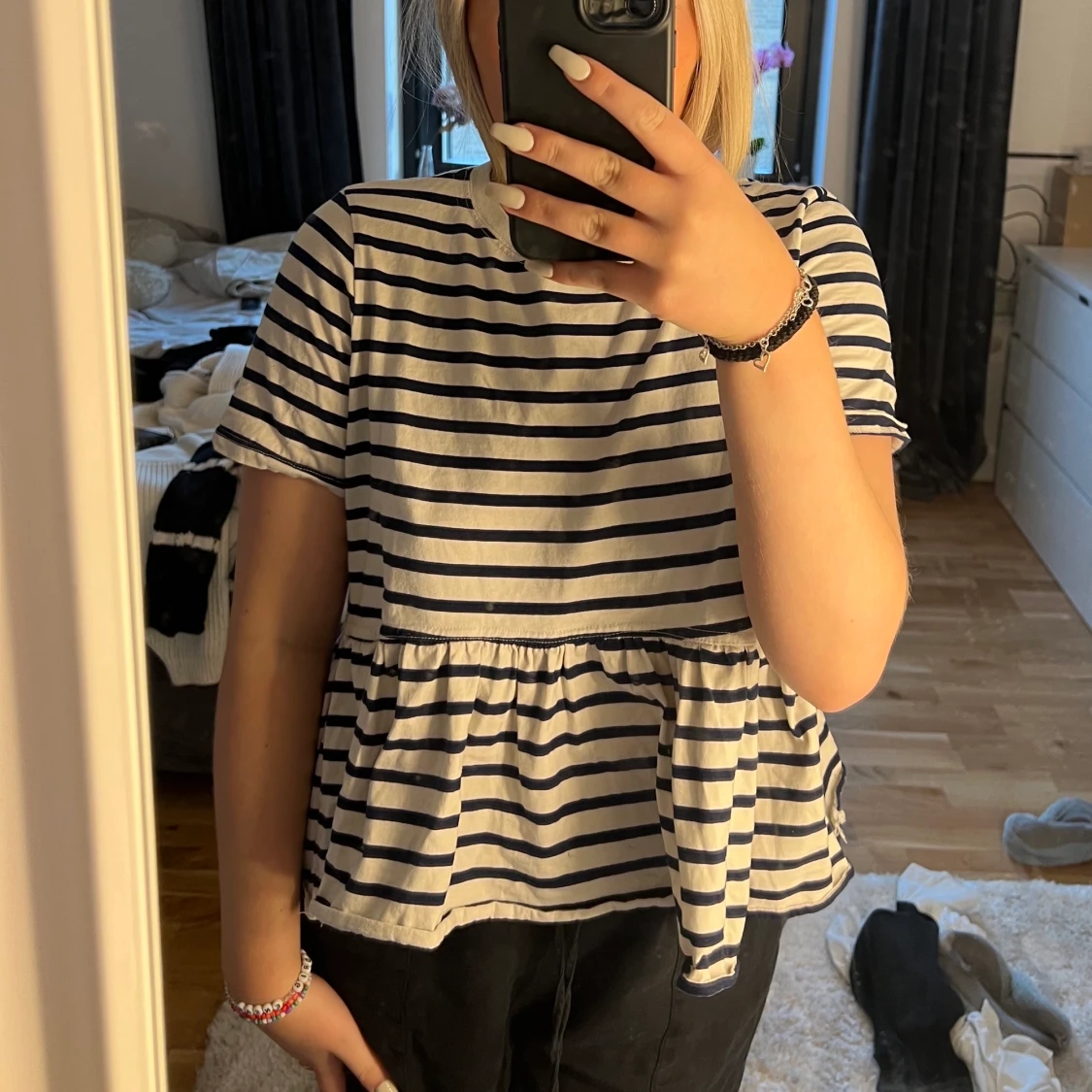 Söt tshirt från zara! Mörk blå och vit randig med en volang nertill!🥰