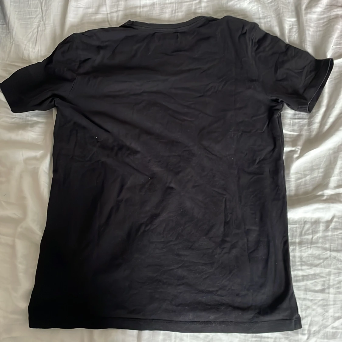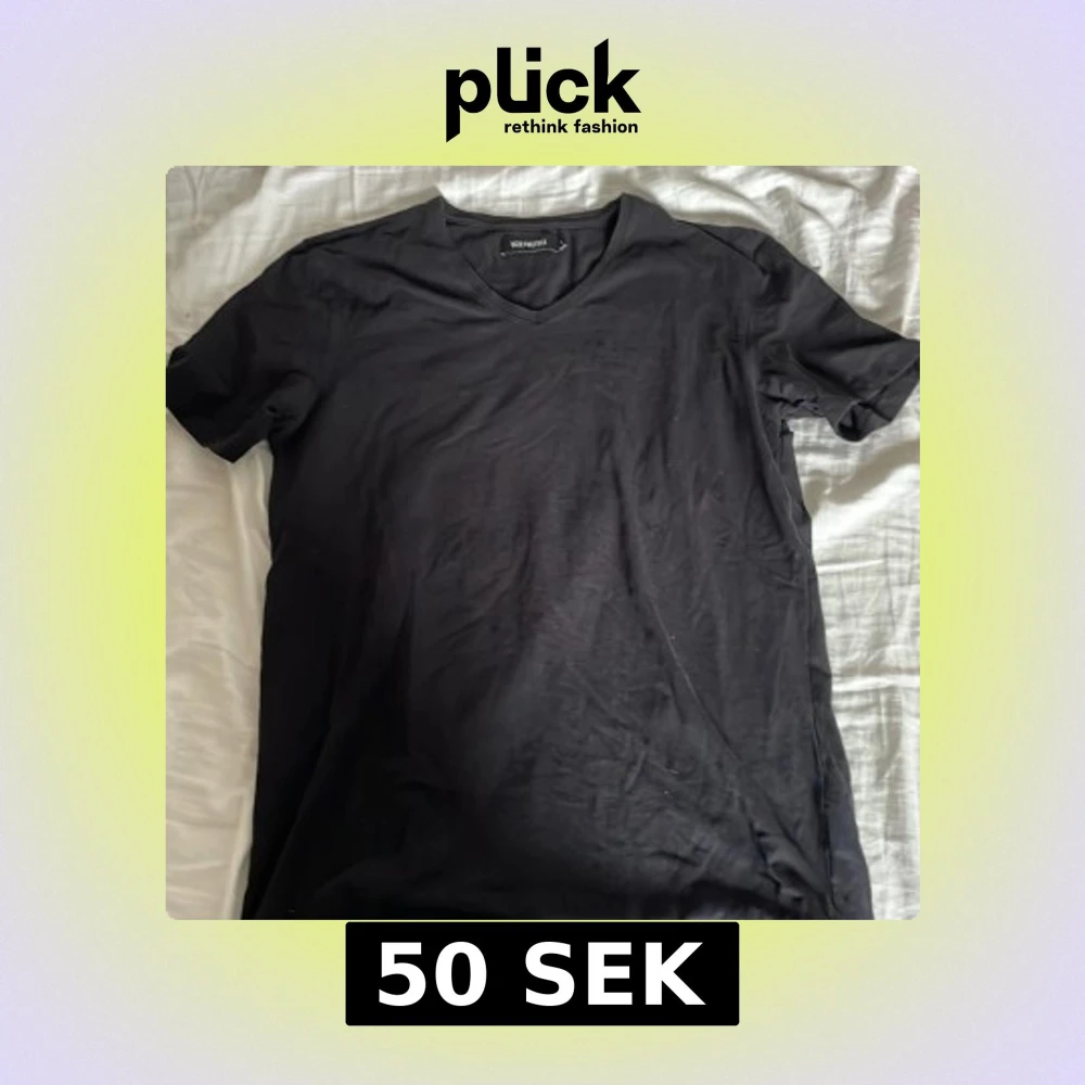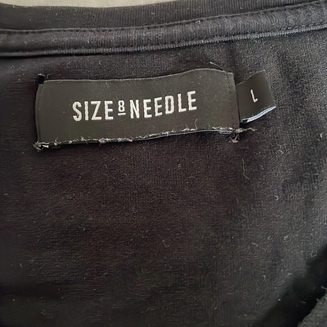 En stilren svart t-shirt från Size & Needle i storlek L. T-shirten har v-ringning och korta ärmar, perfekt för en clean och enkel look. Tillverkad i mjukt bomullstyg som känns skönt mot huden.