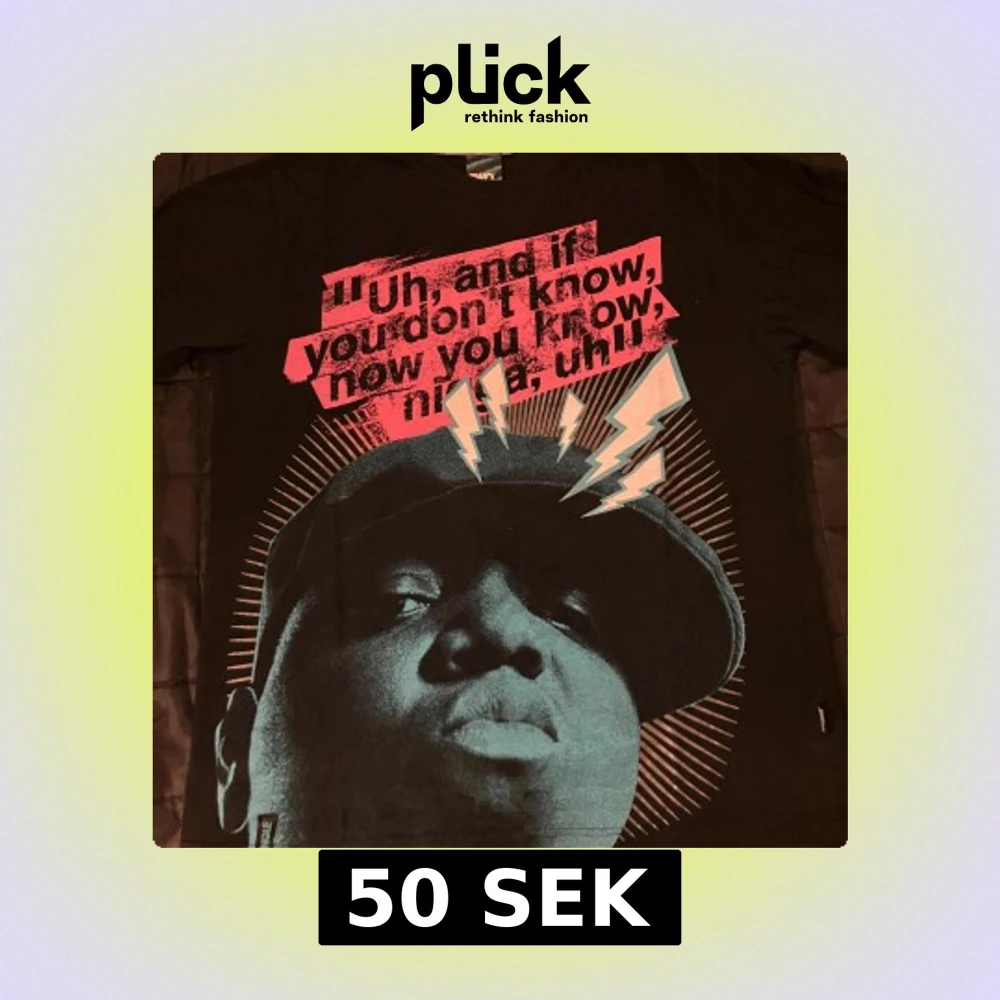Svart t-shirt från the Notorious B.I.G / Biggie Smalls. med stort grafiskt tryck framtill i rött, blått och vitt. Texten är tryckt i en cool, streetinspirerad stil och motivet har blixtar och siluett. Klassisk passform och rund halsringning.