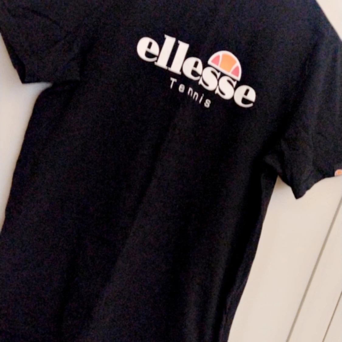 Snygg svart t-shirt från Ellesse med deras ikoniska logga och texten 'Tennis' på framsidan. Perfekt för en sportig look eller avslappnad stil. Kortärmad och bekväm passform. Strl L