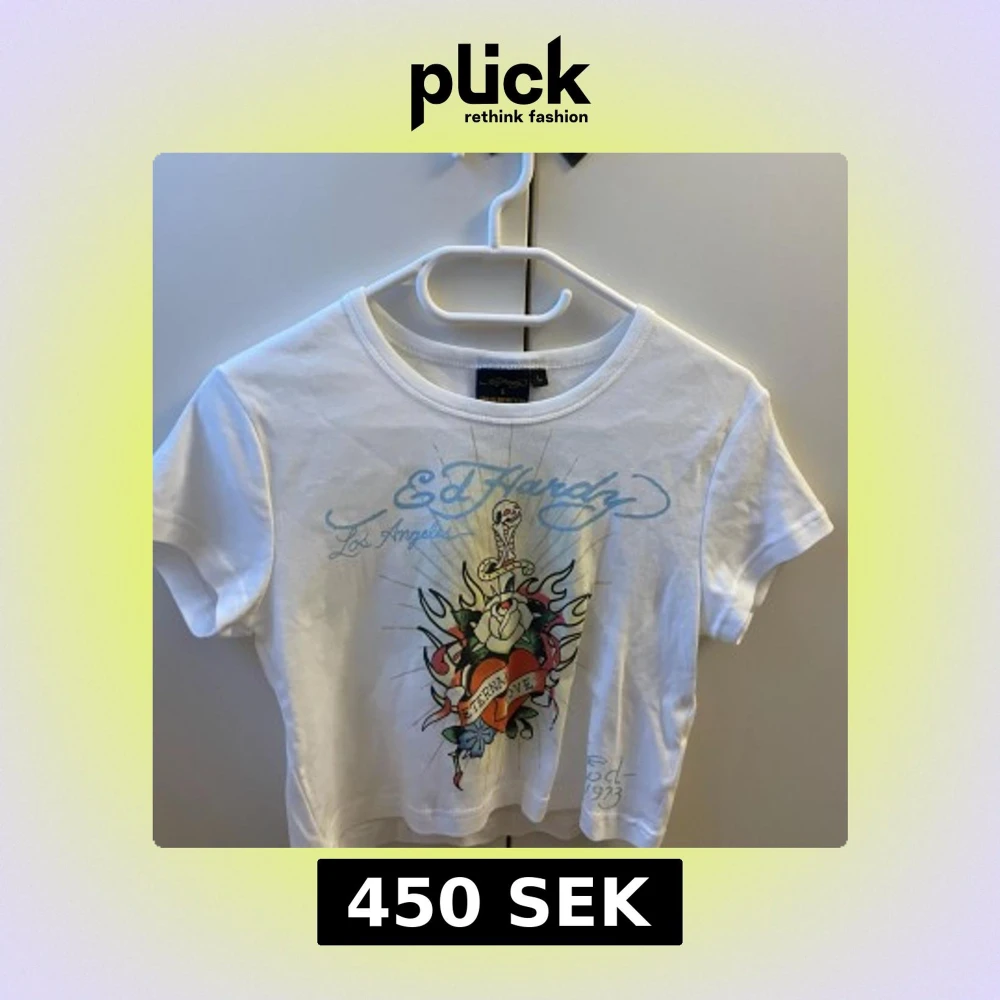 Snygg vit t-shirt från Ed Hardy som är som helt ny! Aldrig använd. Storlek L men passar mer som en S💗
