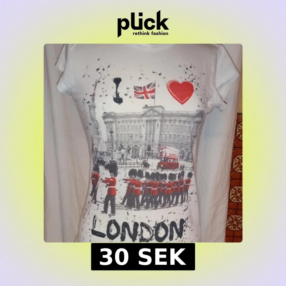 Snygg vit t-shirt från NoS med ett coolt London-motiv. Trycket visar en klassisk scen med vakter, en dubbeldäckare och Union Jack-flaggan. Perfekt för dig som älskar London och vill ha en unik stil. Liten I storleken