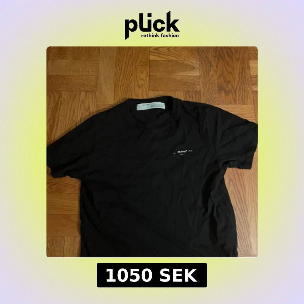Kan gå ner i pris vid snabb affär. Snygg svart t-shirt från Off-White med ikonisk vit logga på baksidan. T-shirten har en liten vit text på framsidan och är kortärmad. Perfekt för en stilren och modern look. Sitter som en L.