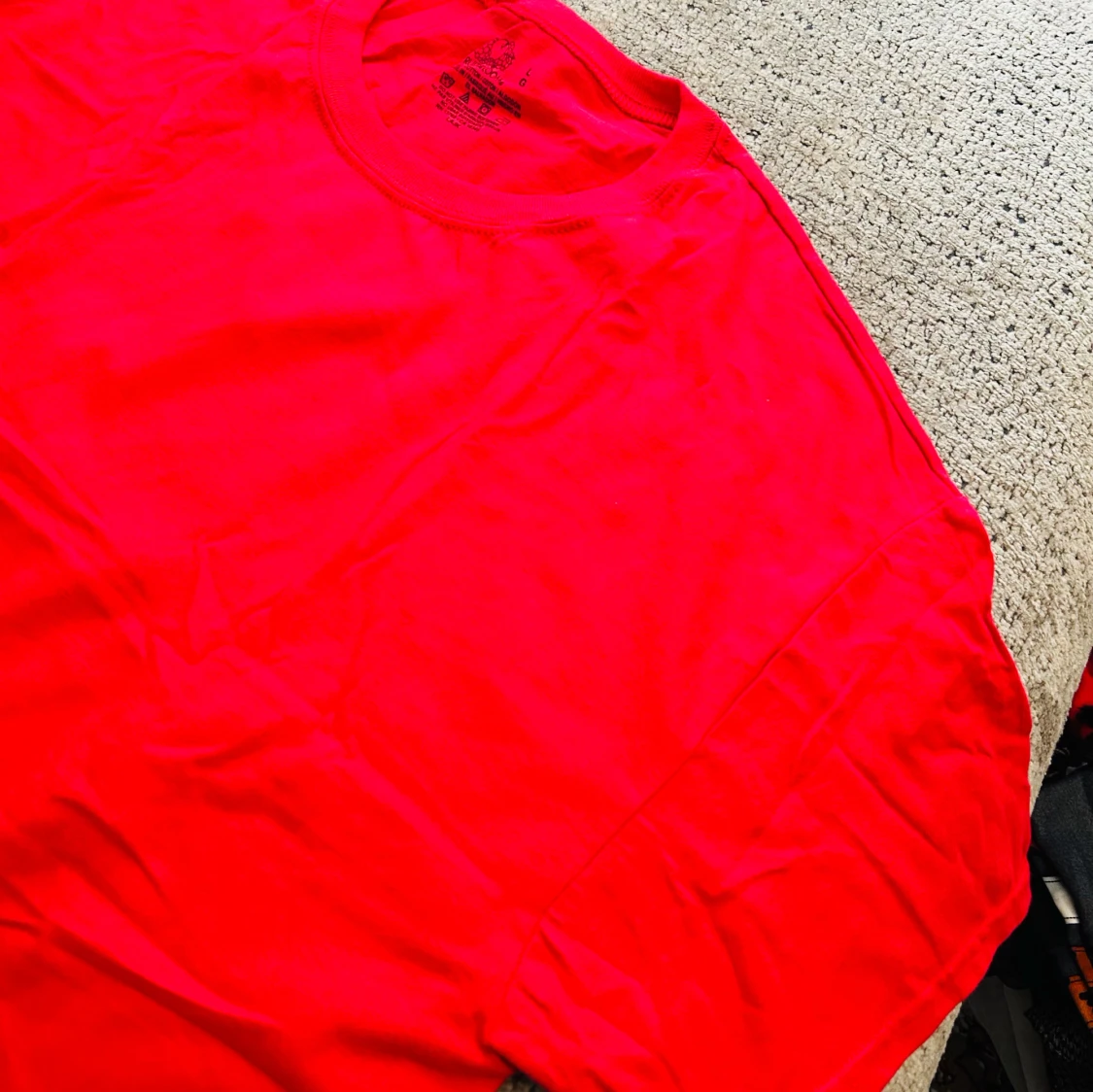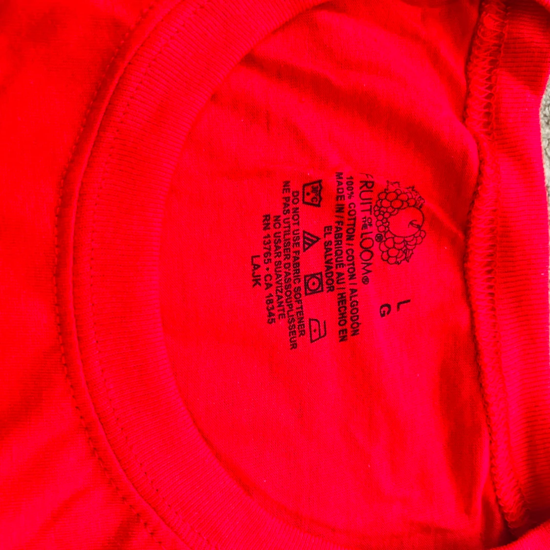 Enkel och klassisk röd t-shirt från Fruit of the Loom i storlek L. T-shirten är helt enfärgad, har rund halsringning och korta ärmar. Tillverkad i 100% bomull för en skön och mjuk känsla. Perfekt till jeans eller shorts för en clean look.