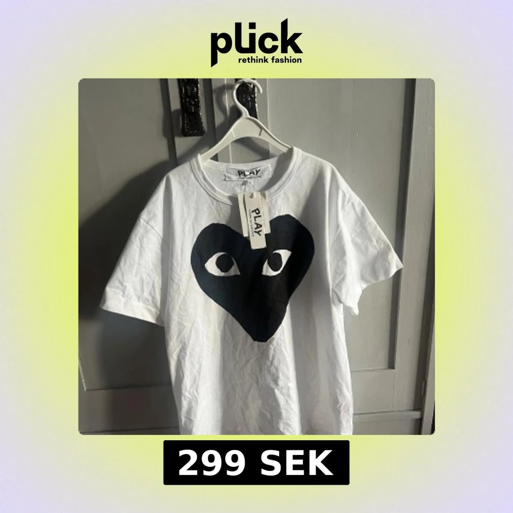 Säljer en vit t-shirt från Comme des Garçons Play med det ikoniska svarta hjärtat med ögon tryckt på bröstet. T-shirten har rund hals och korta ärmar. Kom dm för frågor.