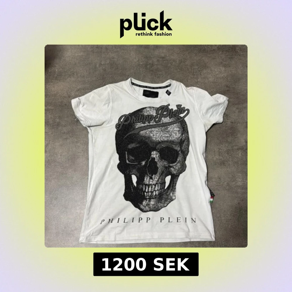 Snygg vit t-shirt från Philipp Plein med ett stort svart dödskalletryck på framsidan. T-shirten har korta ärmar och en normal passform. Perfekt för en cool och avslappnad stil.