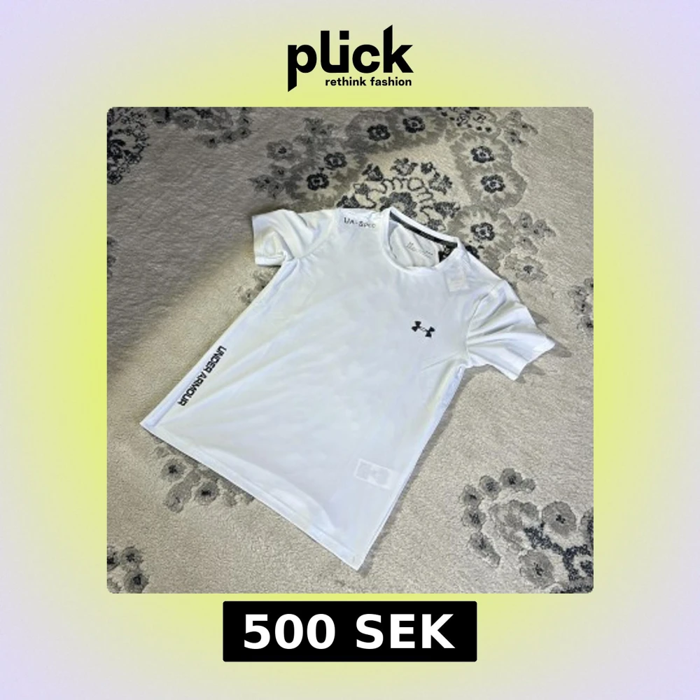 Säljer en vit t-shirt från Under Armour med deras logga på bröstet och text längs sidan. Perfekt för träning med sin lätta och bekväma design. Kortärmad och tillverkad i ett syntetmaterial som andas. Helt nya oanvänd