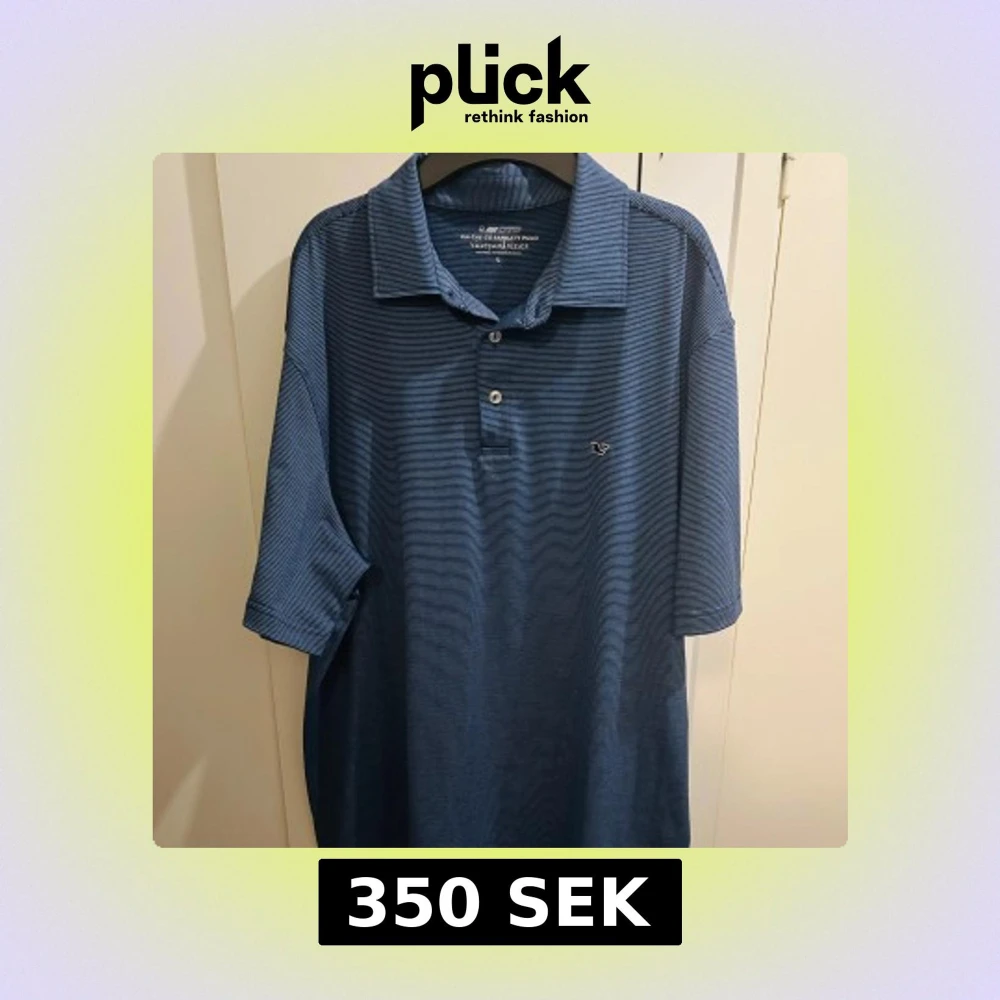 Snygg blå kortärmad polo från Vineyard Vines med tunna vita ränder och klassisk krage. Tröjan har två knappar framtill och en liten broderad val på bröstet. Tillverkad i mjuk polyester och spandex för skön stretch och passform.