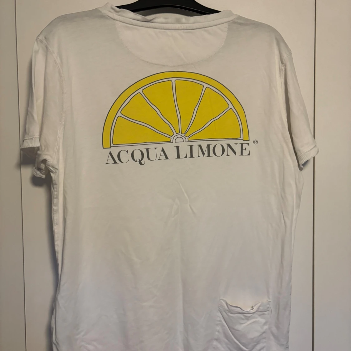 Vit t-shirt från Acqua Limone med klassiskt tryck framtill och stor gul citron på ryggen. Skön passform, rund hals och korta ärmar. Tillverkad i mjuk bomull, perfekt för en chill och avslappnad stil.