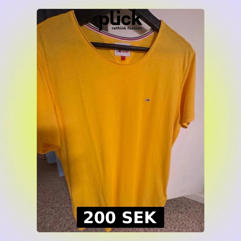 Snygg gul t-shirt från Tommy Jeans i storlek L. Klassisk rund hals med logga på bröstet. Oanvänd utan prislapp.