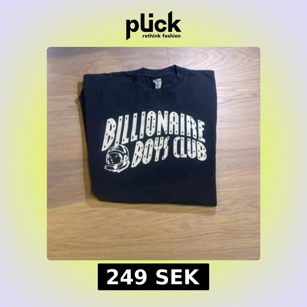 Säljer en svart t-shirt från Billionaire Boys Club med stor vit logga och astronaut-tryck på bröstet. Klassisk rund hals och korta ärmar. Perfekt för dig som gillar streetwear och vill sticka ut med en ikonisk design.