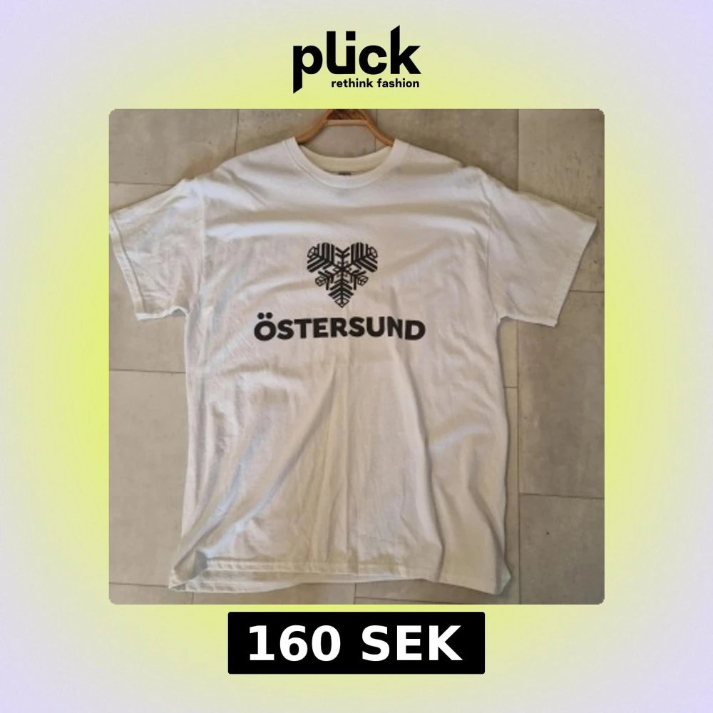 Vit t-shirt med svart tryck framtill där det står Östersund och ett stiliserat hjärta i snöflinge-design. Klassisk rund hals och korta ärmar. Perfekt för dig som vill visa kärlek till staden med en enkel och clean look. Bomull.