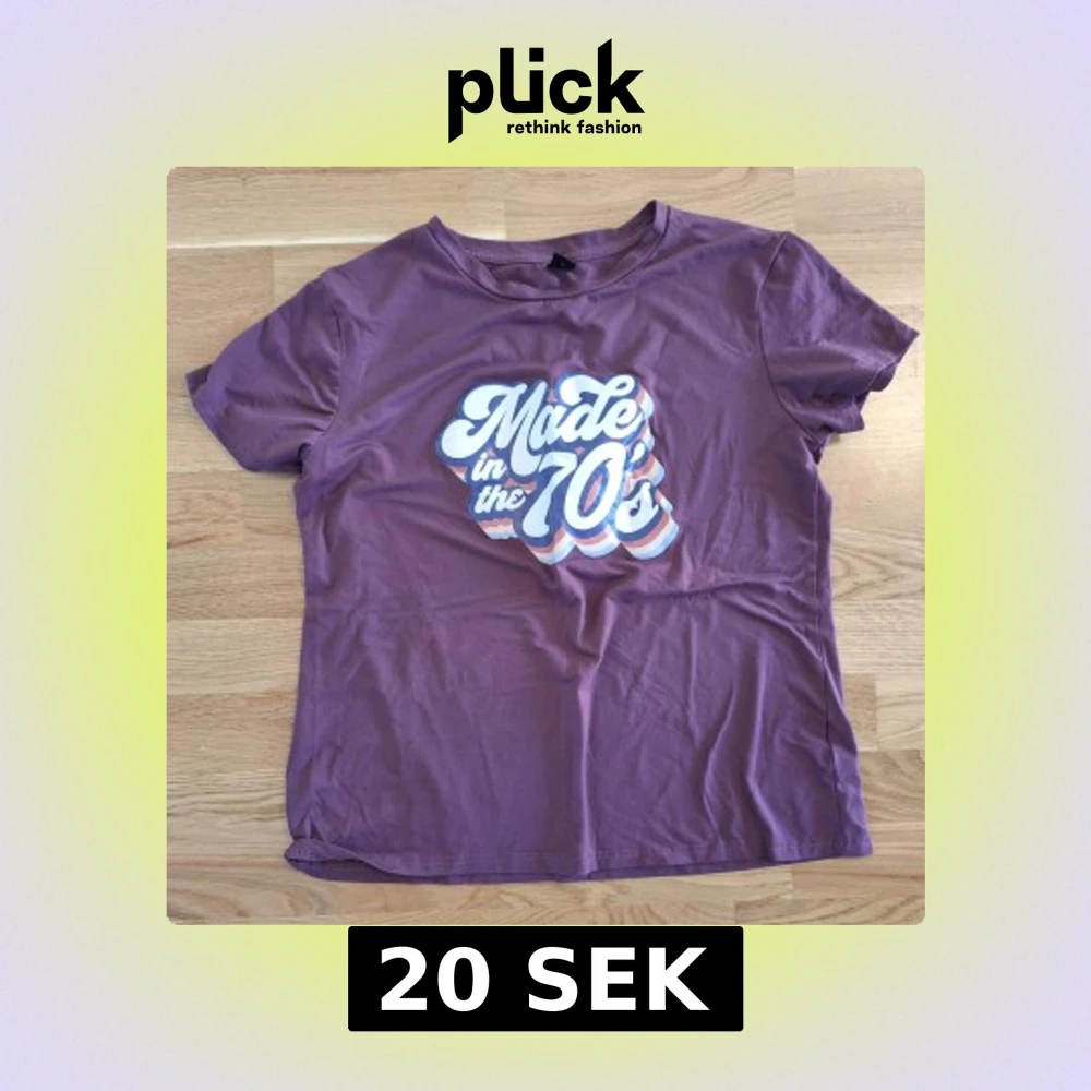 Retroinspirerad lila t-shirt med coolt 'Made in the 70's'-tryck i vitt, blått och rosa på bröstet. Klassisk rund hals och korta ärmar. Perfekt för dig som gillar vintagevibbar och mjuk bomullskänsla.
