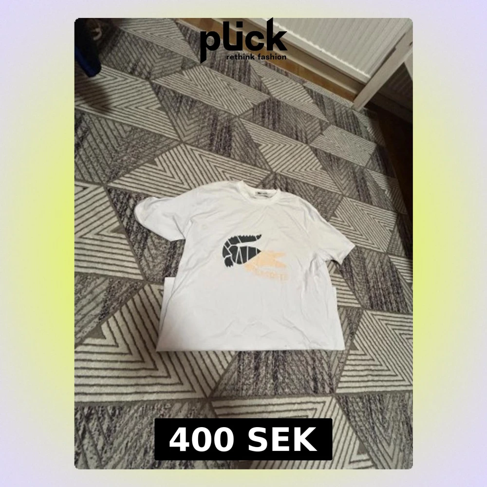 Vit t-shirt från Lacoste i bomull med ett stort grafiskt krokodiltryck i svart och beige på bröstet. Klassisk rund halsringning och korta ärmar. Perfekt för dig som gillar stilrena plagg med en twist.