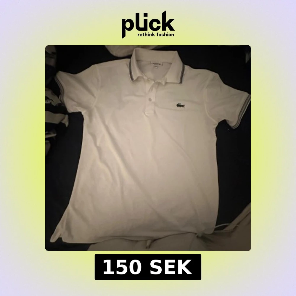 Vit piké t-shirt från Lacoste med klassisk krage och knappar framtill. Har bara använt den 1 gång för att den är för liten. Storlek är L men går och ha Xl.