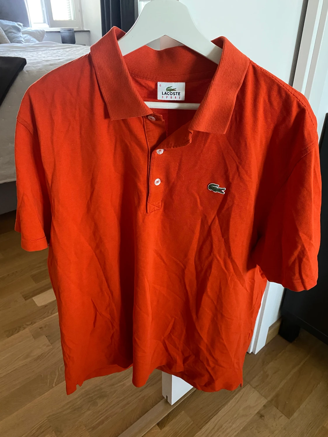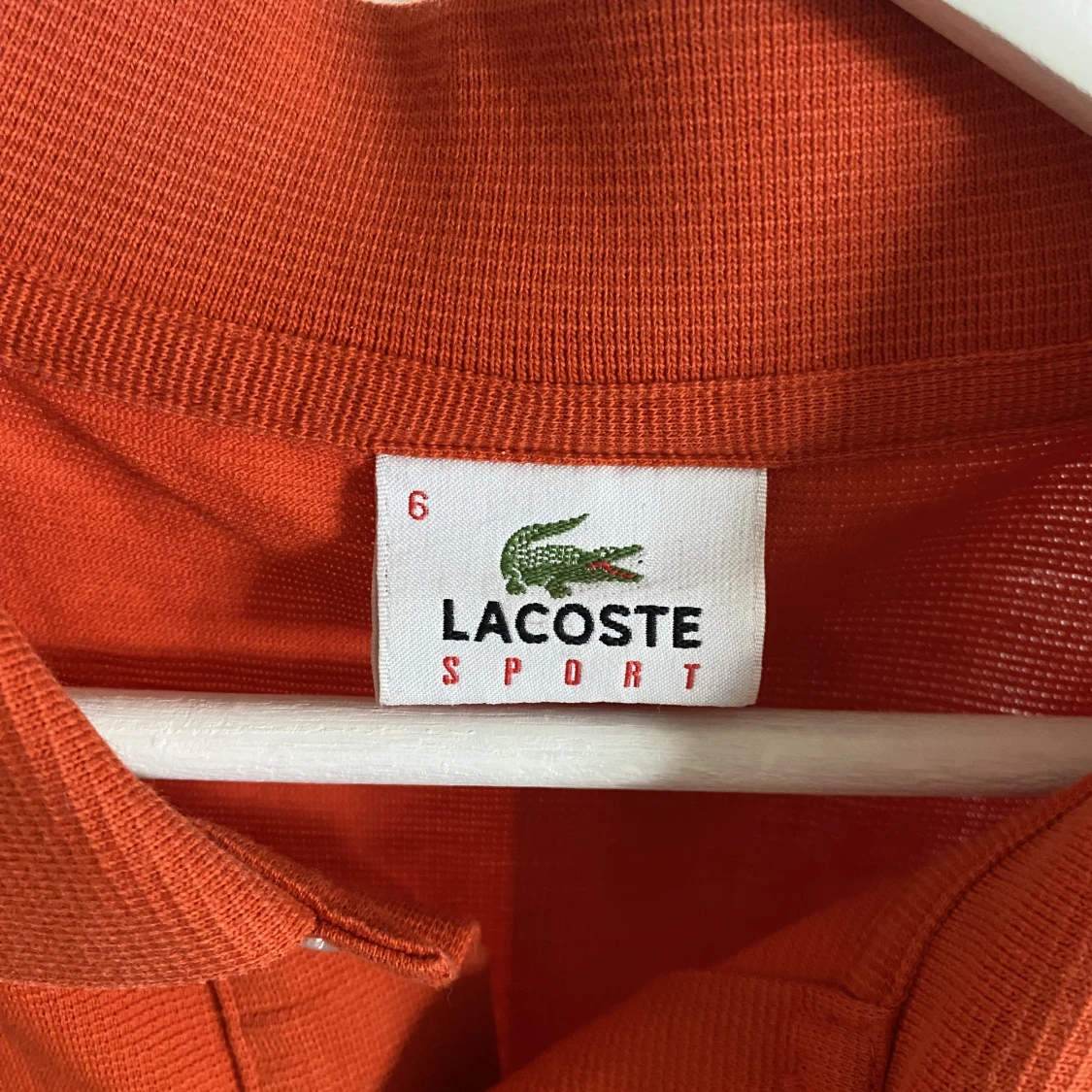Äkta Lacoste piqe som legat i garderoben ett bra tag. Säljes då den inte kommer till användning och är för liten!