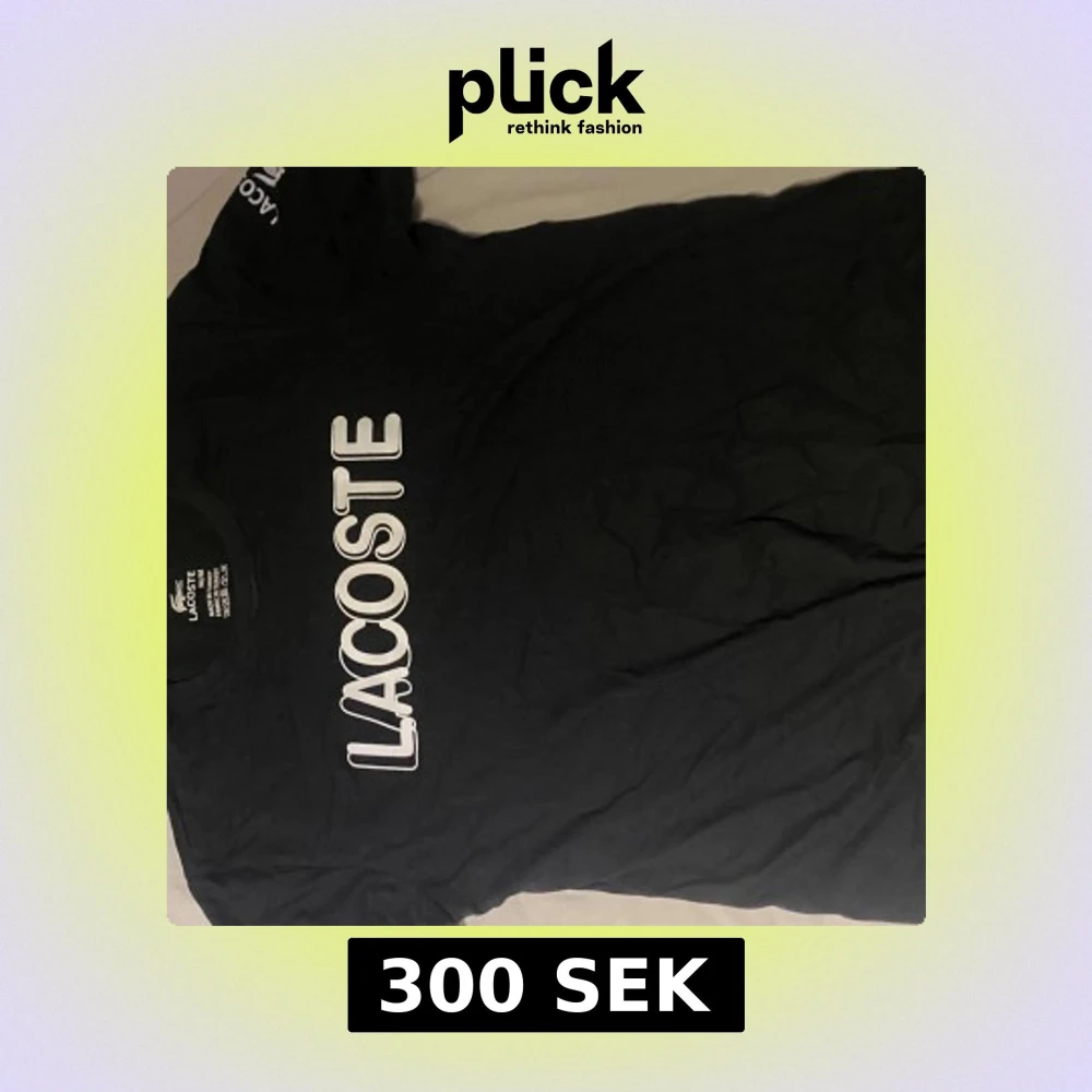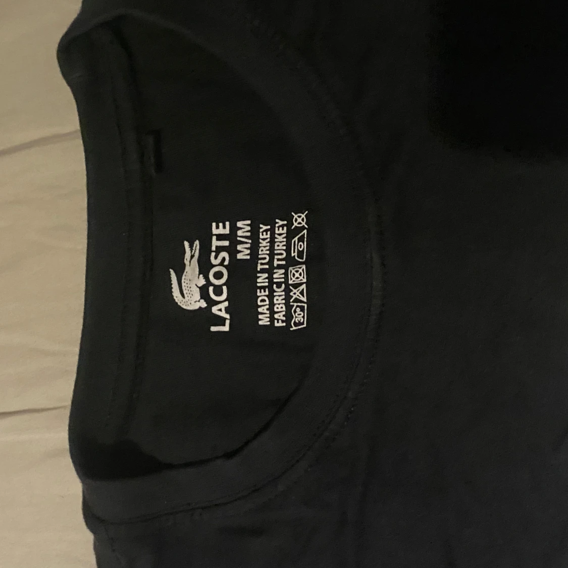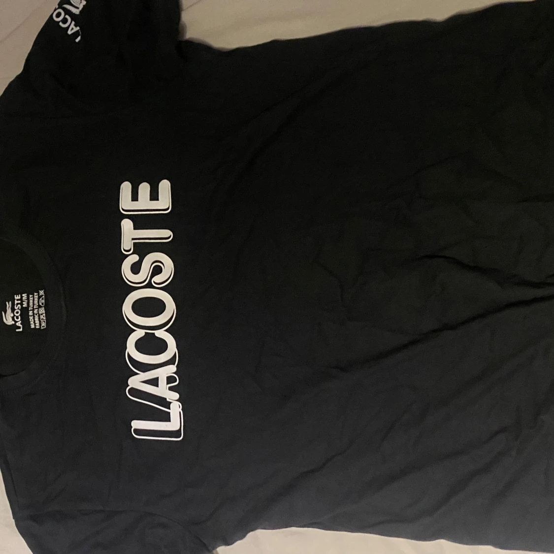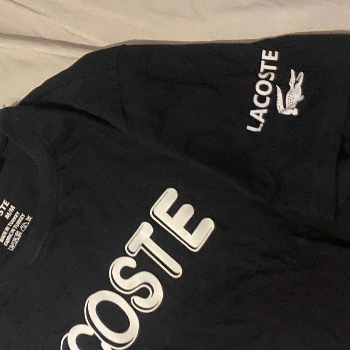 Svart t-shirt från Lacoste med stort vitt logotryck på bröstet och mindre logga med krokodil på ärmen. Rund hals och klassisk passform. Tillverkad i mjuk bomull som är skön mot huden. Perfekt för dig som gillar stilrena och sportiga märkesplagg. Bra skick, pris ka diskuteras!