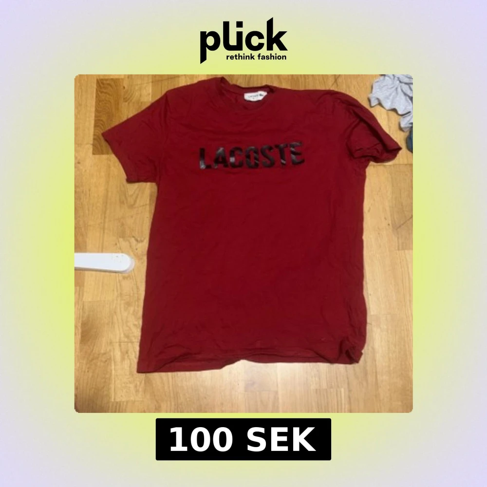 Snygg röd t-shirt från Lacoste i bomull med svart glansigt Lacoste-tryck över bröstet. Klassisk rund hals och korta ärmar, perfekt för en clean och stilren look. Passar dig som gillar streetwear och vill ha något enkelt men ändå med statement.
