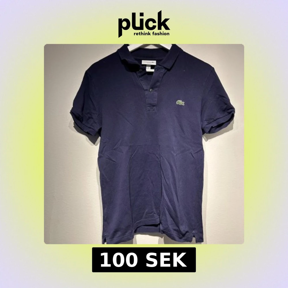 Säljer en klassisk mörkblå pikétröja från Lacoste med den ikoniska krokodilloggan på bröstet. Tröjan har korta ärmar och en stilren krage med knappar. Perfekt för en avslappnad men stilfull look.