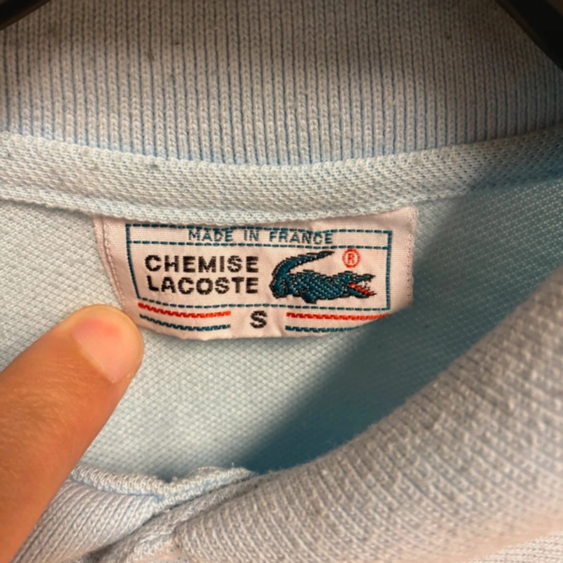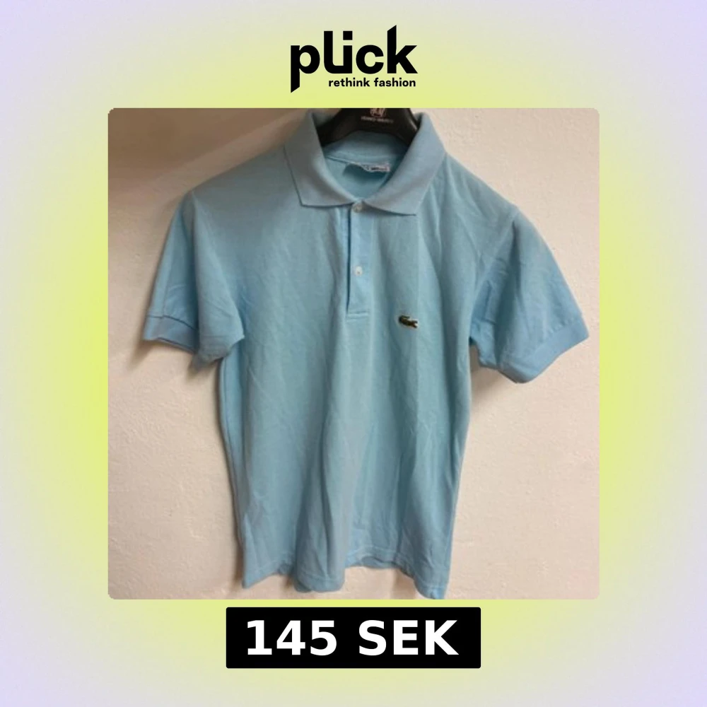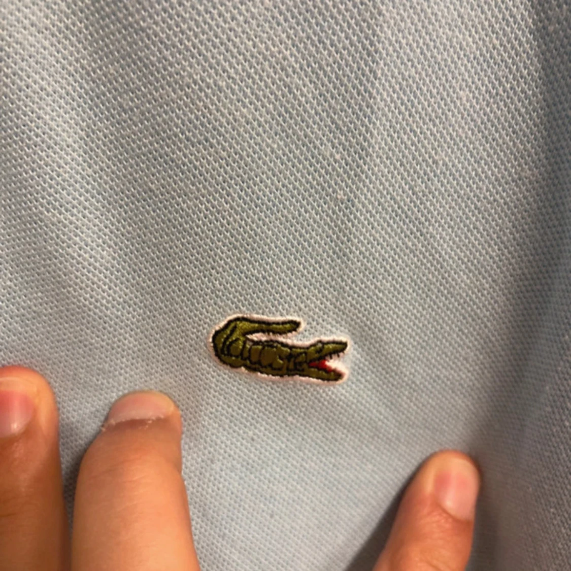 Säljer en klassisk ljusblå pikétröja från Lacoste med den ikoniska krokodilloggan broderad på bröstet. Tröjan har korta ärmar, krage och knappar framtill. Materialet är mjuk bomull som andas och passar perfekt till en chill stil.
