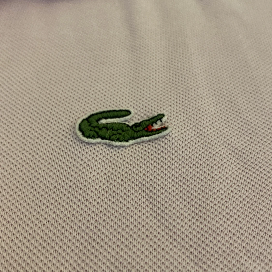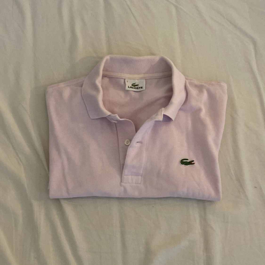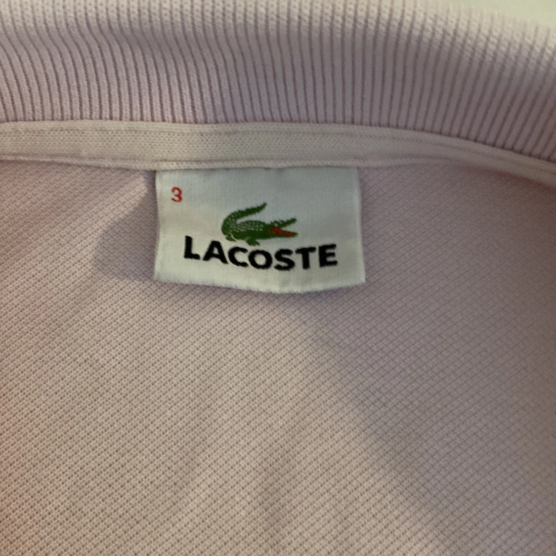 Säljer en ljusrosa pikétröja från Lacoste med klassisk krage och knäppning framtill. Tröjan har det ikoniska gröna krokodilmärket broderat på bröstet. Tillverkad i bomull och har korta ärmar. Perfekt för en clean och sportig stil.
