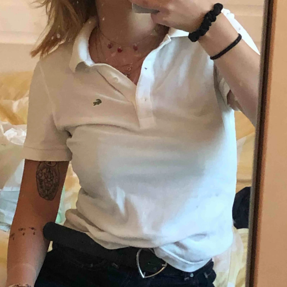 Vintage Lacoste piké (80-90tal pga ärmarna). Fint skick, inga synliga fläckar utanpå tröjan däremot är de gula under ärmarna inifrån (går att bleka bort).