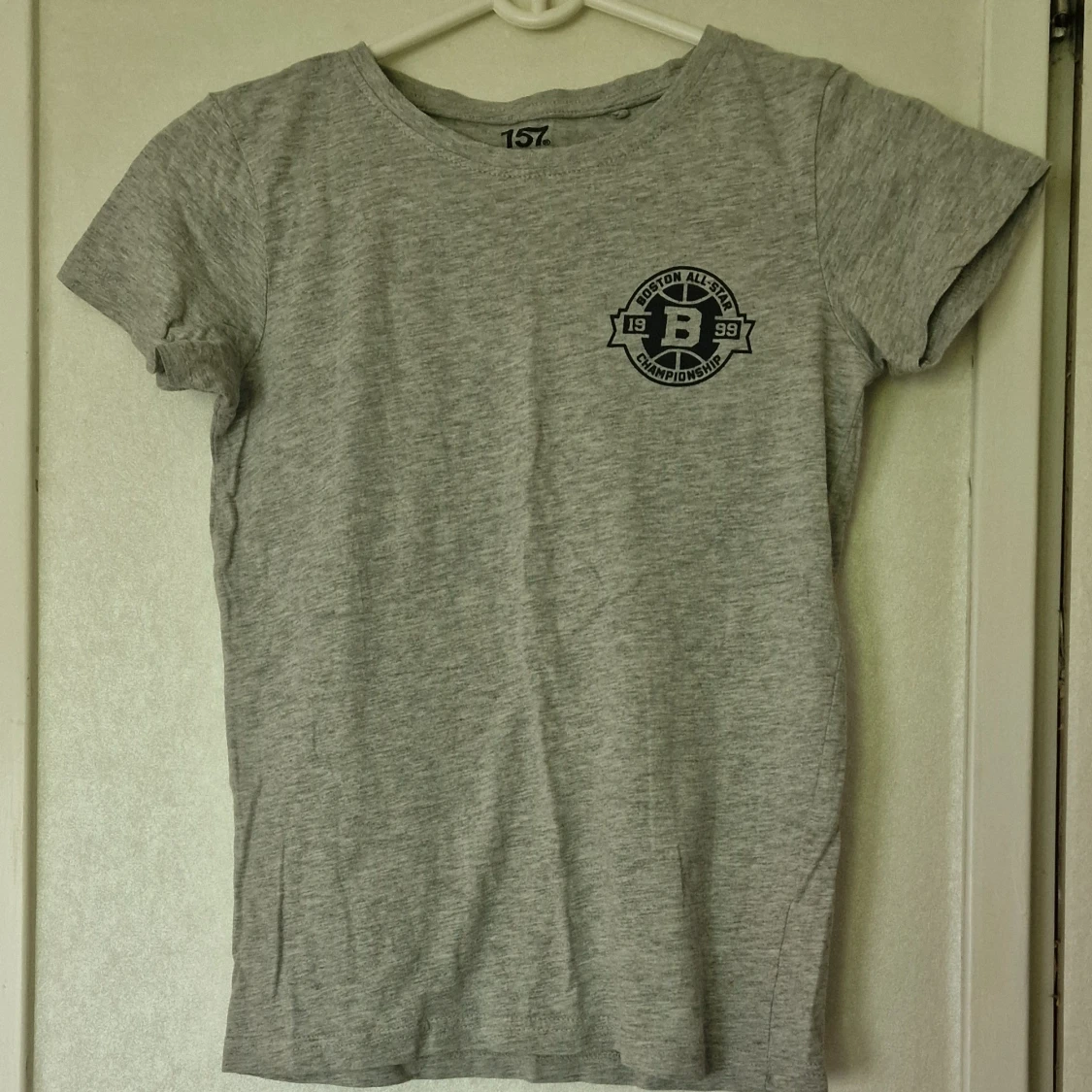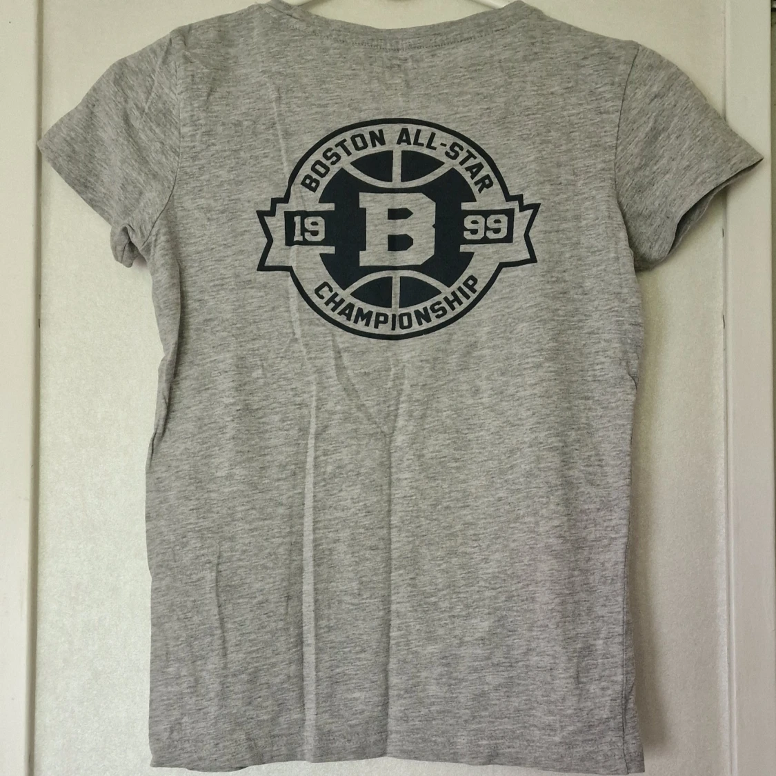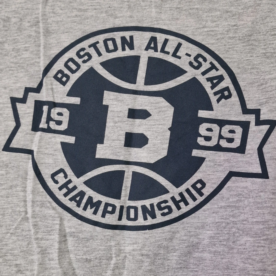 Gråmelerad t-shirt från lager 157 med tryck 'Boston All-Star Championship 1999' i mörkblått på bröstet och ryggen. Klassisk rund hals och korta ärmar. Tillverkad i mjuk bomullsblandning för en skön känsla. Perfekt för en sportig och avslappnad stil.