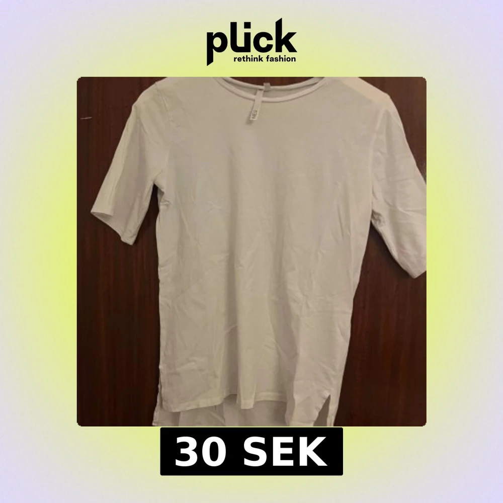 Vit t-shirt från 157 i storlek S. Modellen har rund hals, korta ärmar och är tillverkad i mjuk bomull. T-shirten har en enkel och clean look med slits i nederkanten på sidorna. Perfekt för dig som gillar minimalistisk stil.