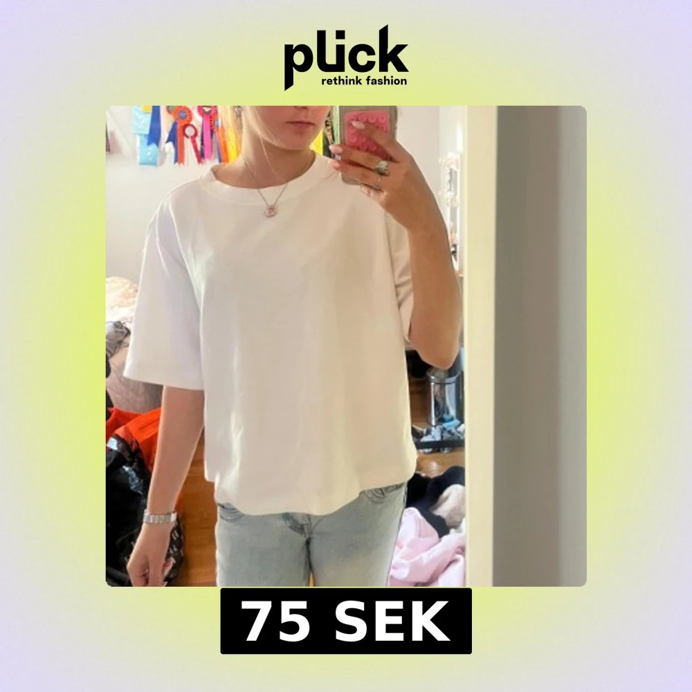 Säljer en vit t-shirt från 157 i oversized modell. T-shirten har rund halsringning och korta ärmar, tillverkad i mjuk bomull. Perfekt basic-plagg att styla med jeans eller shorts.