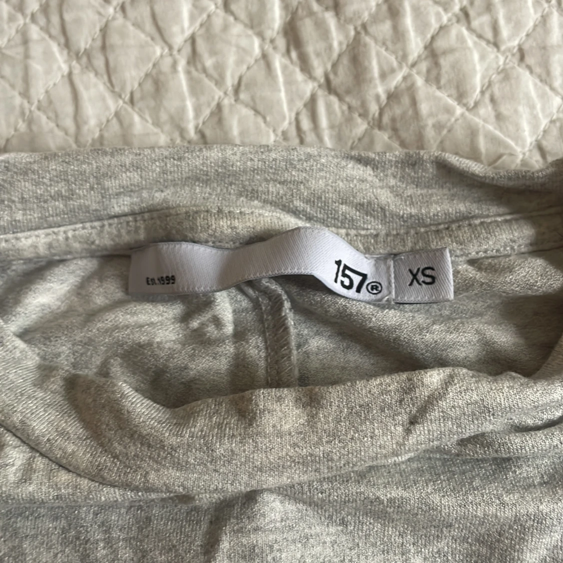 Ljusgrå t-shirt från 157 i storlek XS. Modellen är klassisk med rund hals och korta ärmar. Materialet känns mjukt och lätt, perfekt för en chill och enkel stil. Passformen är normal och färgen är diskret grå, vilket gör den enkel att matcha med allt.
