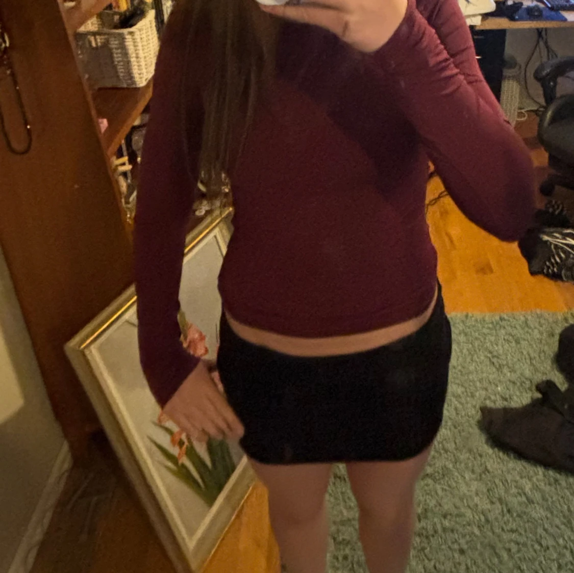 Vinröd långärmad luftig tröja i enkel design