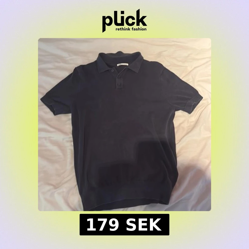 Snygg mörkblå pikétröja från Zara i klassisk modell med krage och knappar framtill. T-shirten har korta ärmar och är tillverkad i mjukt material som känns skönt mot huden. Perfekt för en clean och stilren look.