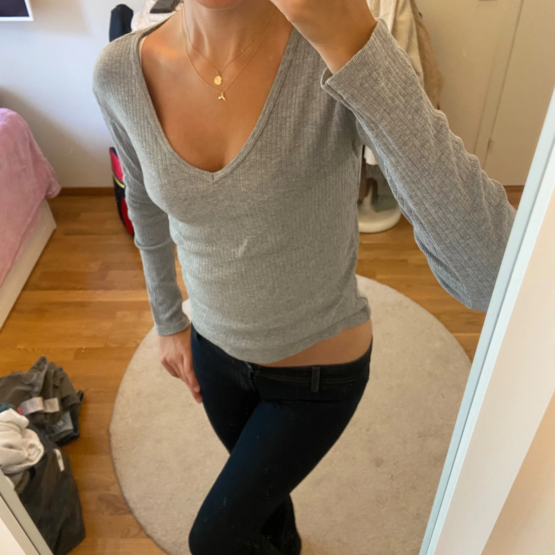 Superfin grå långärmad tröja från Brandy Melville❣️den har inte kommit till användning då jag inte tycker om grått, så den är i perfekt skick!! Såå fin nu till hösten!! 🤍